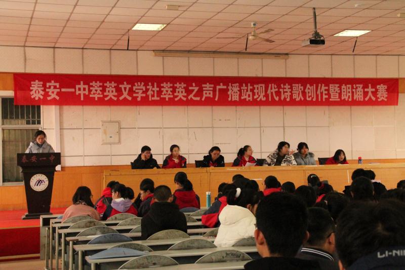 12月5日早上07:30分,泰安一中现代诗歌创作暨朗诵大赛的决赛在泰山大讲堂隆重举行。