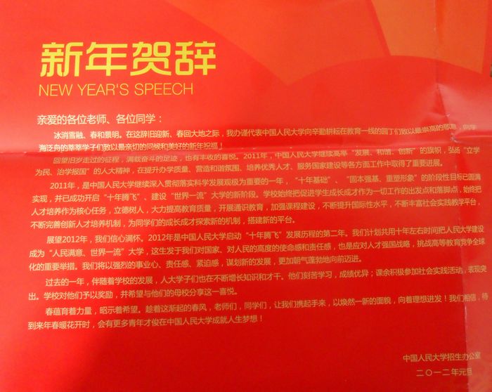 中国人民大学致我校喜报