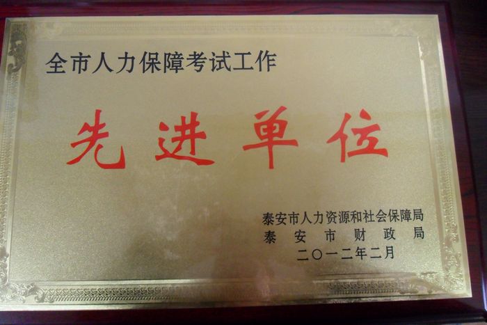 2月22日,全市人力资源社会保障工作会议暨泰安市就业促进会成立大会召开。会议表彰了2011年度先进集体和个人,我校被市人力资源和社会保障局、市财政局表彰为全市人力保障考试工作先进单位。