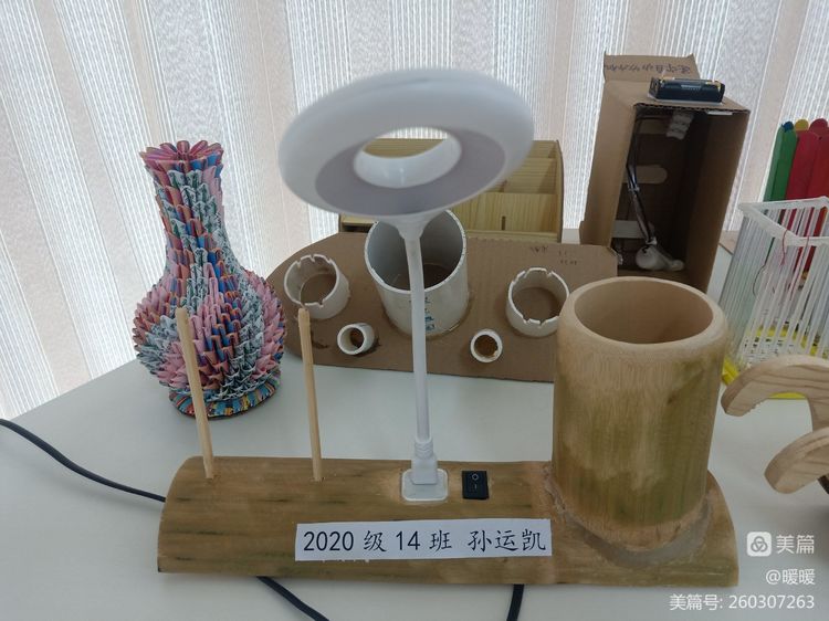 通用技术创意设计现场展示的学生作品各式各样,有投球器、火箭模型、创意台灯、纸板吉他、液压挖掘机、木制板凳、笔筒,、温控排风警示系统……可谓是“八仙过海,各显神通”,这些创意无限的精美作品融入了同学们天马行空的想象力和创作力。这是一场充满“奇思妙想”的创意设计展,也是一场精美绝伦的“艺术场”,不同的创意在这里交织出火花。