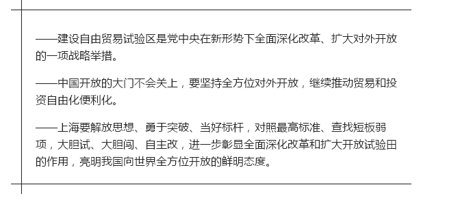 今年,习近平说,要努力把上海自由贸易试验区建设成为开放和创新融为一体的综合改革试验区,成为服务国家一带一路建设、推动市场主体走出去的桥头堡。