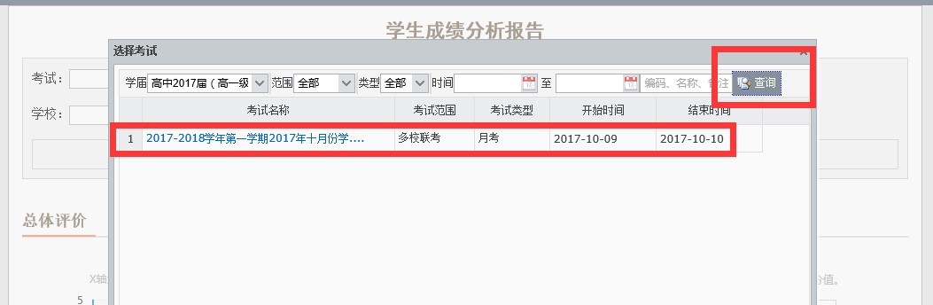 3、选择左侧统计分析-数据分析中心,点击学生成绩分析报告。 4、点击选择考试