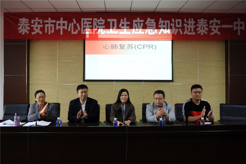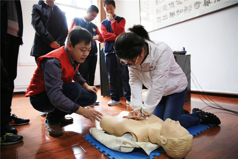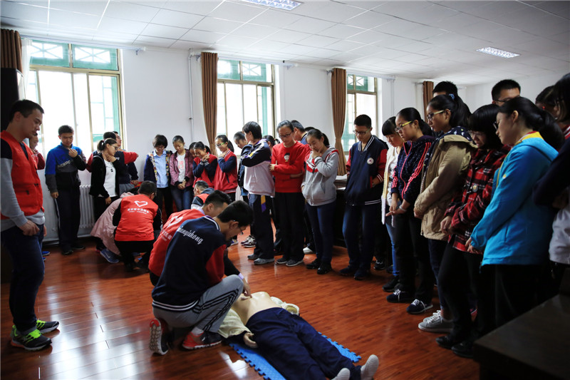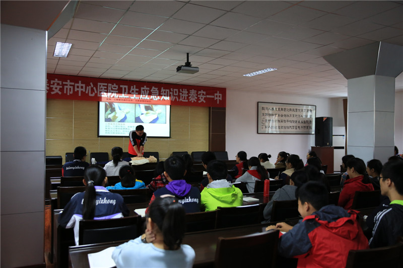 10月22日,泰安一中ALIVE意外求生与急救社70余名同学接受了来自泰安市中心医院应急办携手“男丁格尔”志愿团的男护们带来的心肺复苏急救知识的培训。 中心医院急救护士孟勐利用多媒体和现场示范的形式对师生们进行了心肺复苏急救培训,介绍了心肺复苏的操作要领,包括判断呼吸和意识、呼救、胸外按压、开放气道、人工呼吸等方面的知识,并就操作过程中的注意事项逐一进行示范。讲解结束后,10余名志愿者指导全体师生进行了分组练习,师生们争先恐后的动手操作,期间他们还向社团赠送了30册《卫生应急知识》宣传手册。 此次培训增强了师生的急救意识,丰富了急救知识,使同学们认识到发生意外伤害和突发事件时,要迅速进行自救、互救,争取最大程度地减少伤残、甚至死亡。活动凸显了急救常识从学生抓起的重要意义,活动结束后,参加培训的同学互相分享心得体会,同时意识到掌握急救技能、提高自救互救能力的重要性。