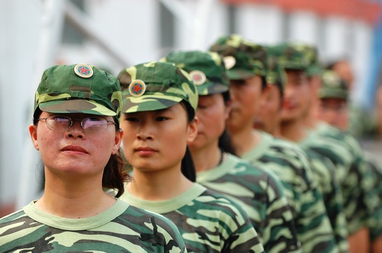 为加强我校教师队伍建设,进一步提高教师综合素质,加快“创名校、出名师、育名生”的步伐,在新生军训前,2004、2005级班主任、体育教师进行了为期两天的军事训练。图为精神抖擞、英姿勃发的参训教师。