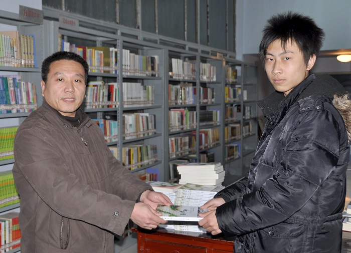 我校高二姚武冠楠同学向学校赠书 |