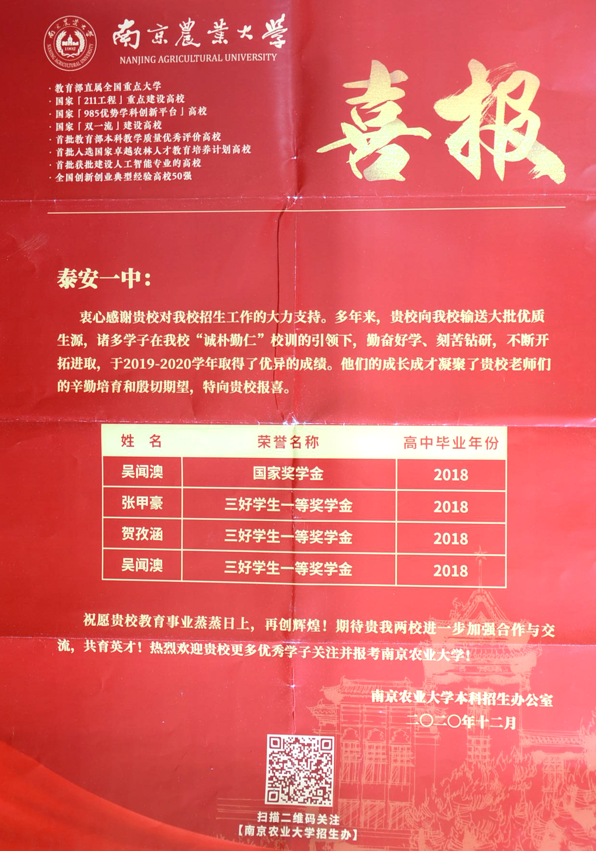 喜报频传彰显泰安一中办学实力 |